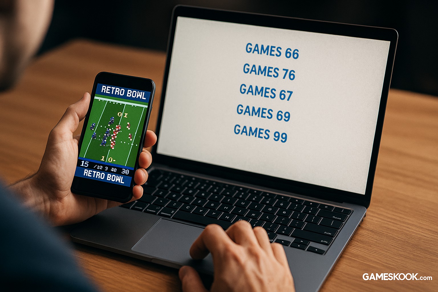 Sites like Games 66 and Games 76 host Retro Bowl in the browser. You don’t need to sign up. You don’t need to download anything. You click, play, and enjoy.